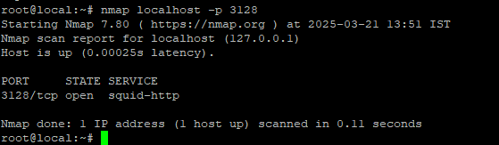 # nmap localhost -p 3128
