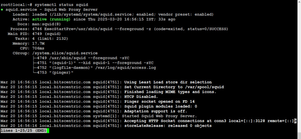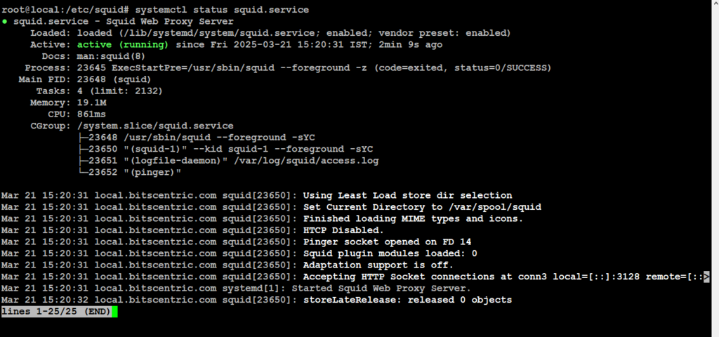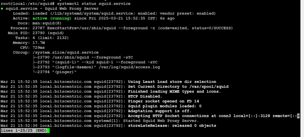 # systemctl restart squid.service