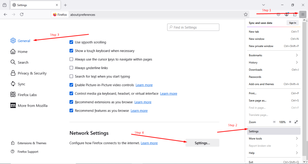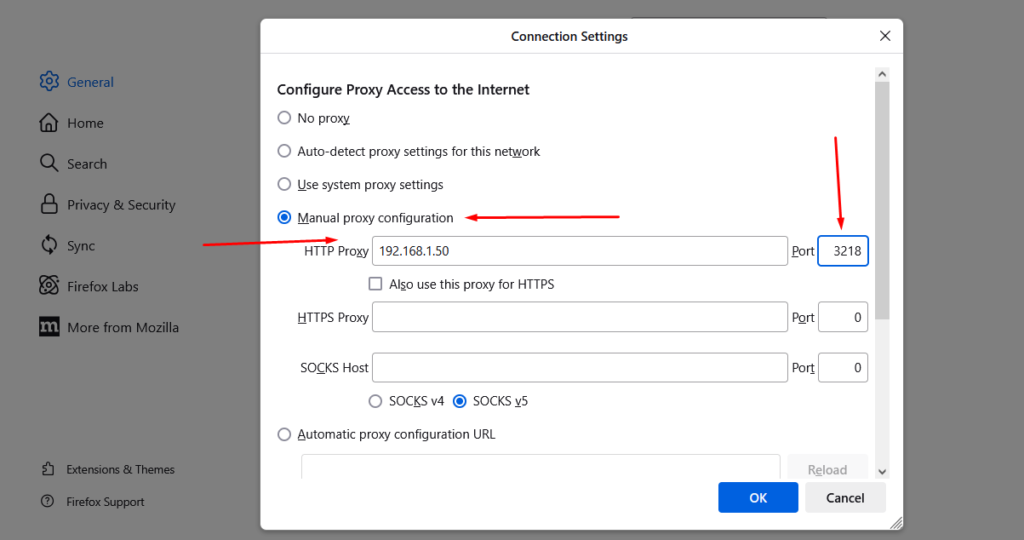 After installing and setting up Squid, you need to configure your web browser to use the proxy. Here’s how to do it in Firefox: