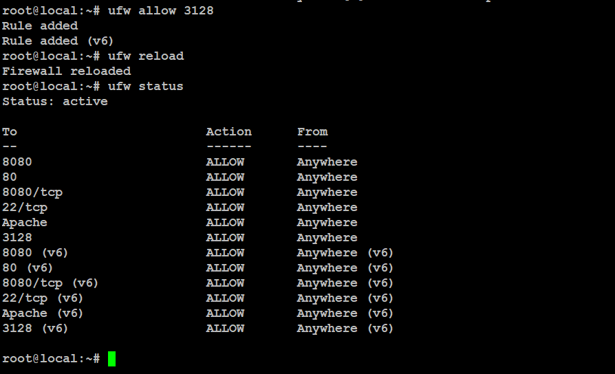 # ufw allow 3128