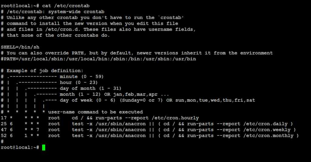 # cat /etc/crontab