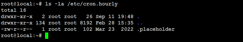 # ls -la /etc/cron.hourly