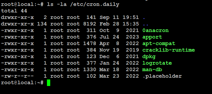 # ls -la /etc/cron.daily