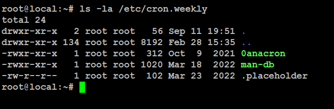 # ls -la /etc/cron.weekly