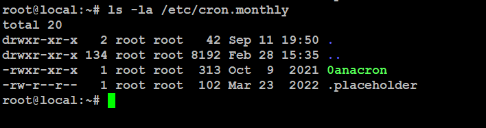 # ls -la /etc/cron.monthly